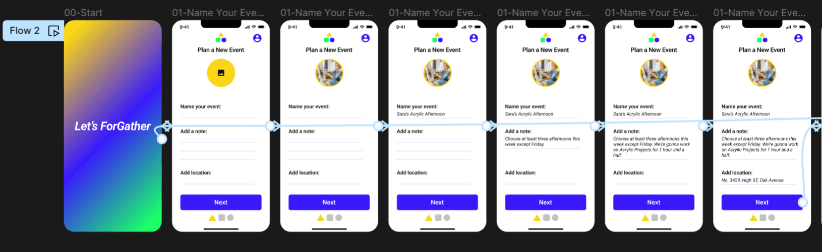 To gain deeper insights into crafting the foundational experience for the Forgather app, I crafted a user journey. This enabled me to prioritize the user's experience and needs. The approach also facilitated clear communication of entry and exit points, enhancing understanding of the next steps in the process.