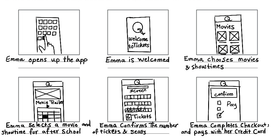 Scenario: Use a mobile ticketing app to quickly book a movie showtime for her group of friends after school