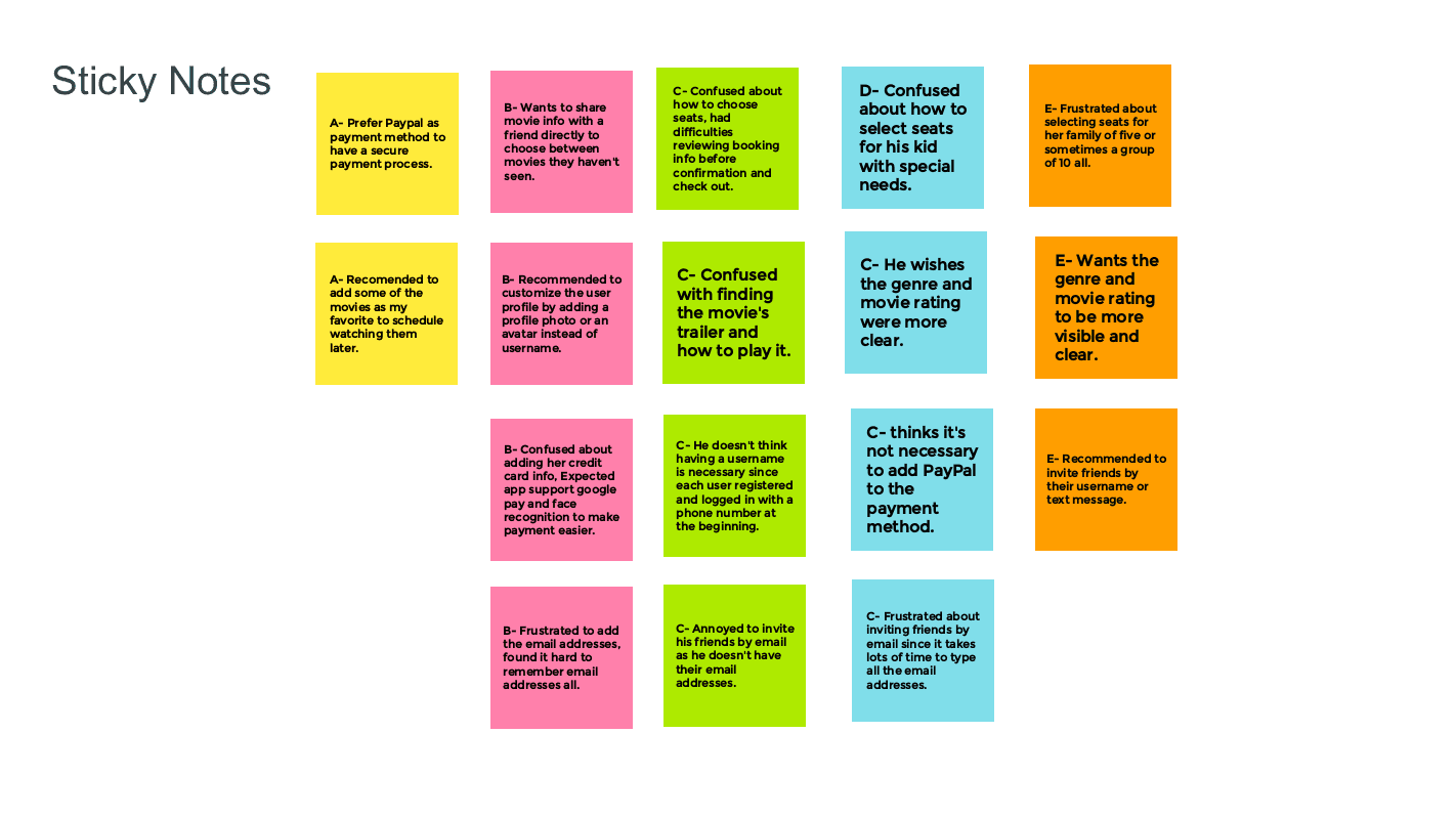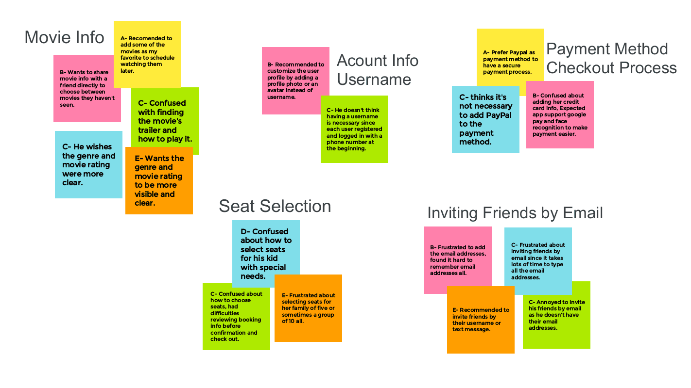 I conducted interviews and crafted empathy maps to pinpoint key user groups. As a result, I identified two primary segments: students gathering after school, requiring seamless movie information sharing, and families seeking an effortless ticketing experience. This guided a design focus on user-friendly features for collaborative decision-making among students and a hassle-free ticketing journey for families.